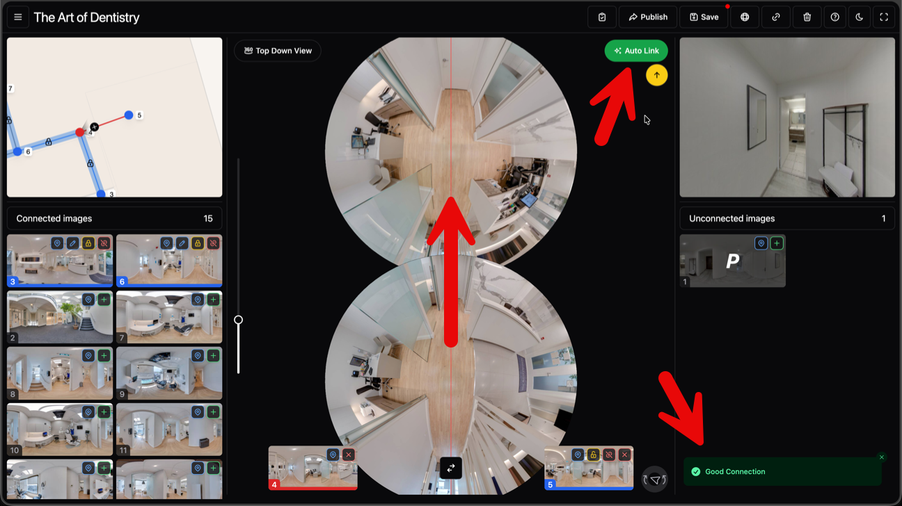 Do that for each pair, and you can have a full 17-image dentist office tour properly connected in 2 to 3 minutes. Without the AI, the same job takes way longer and comes with a lot more frustration.